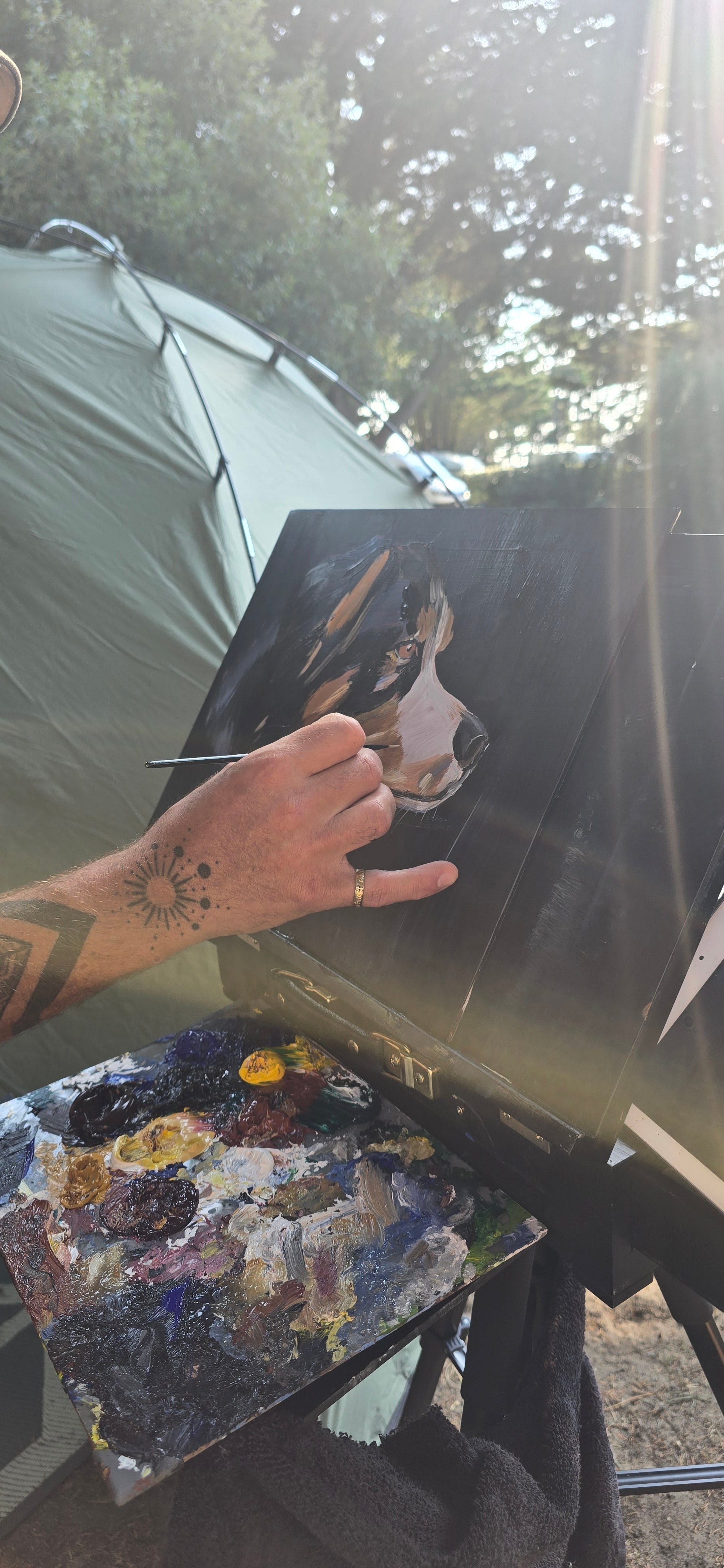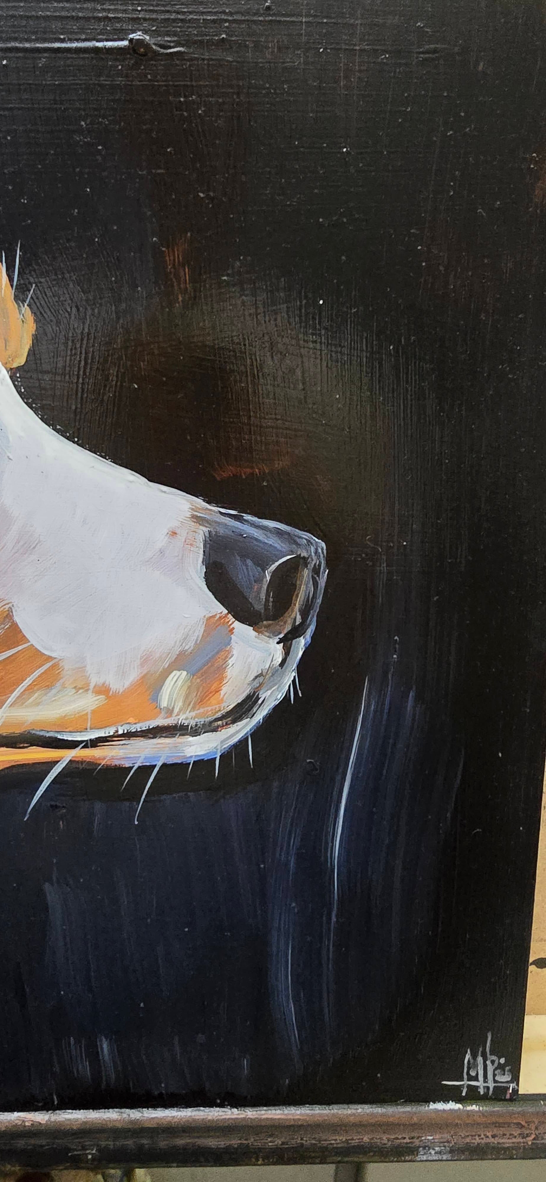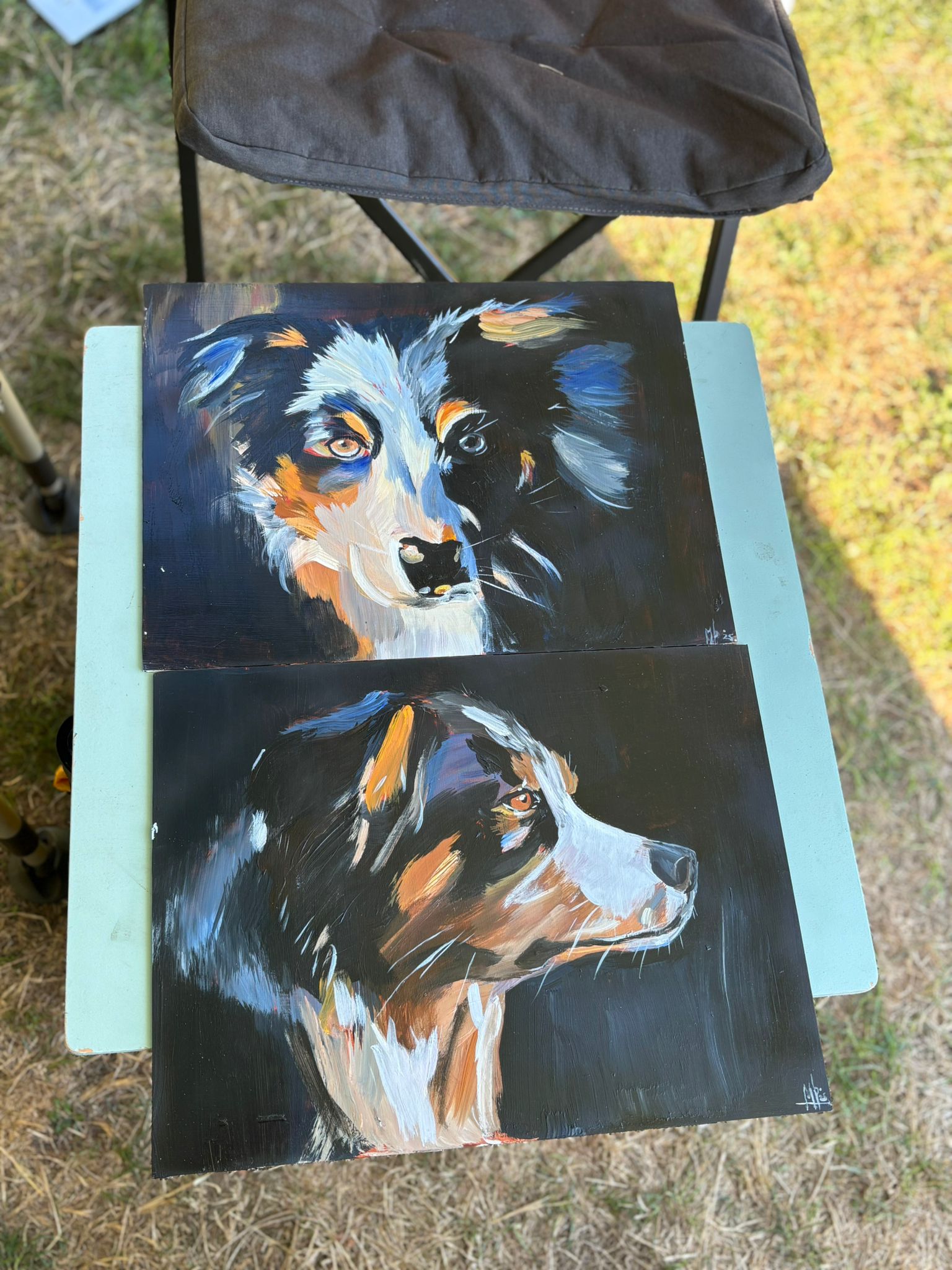 A bold and soulful portrait of an Australian Shepherd, painted with expressive brushstrokes and rich, contrasting colors. The side profile captures the breed’s sharp focus and quiet strength, making it a striking centerpiece for any collection.