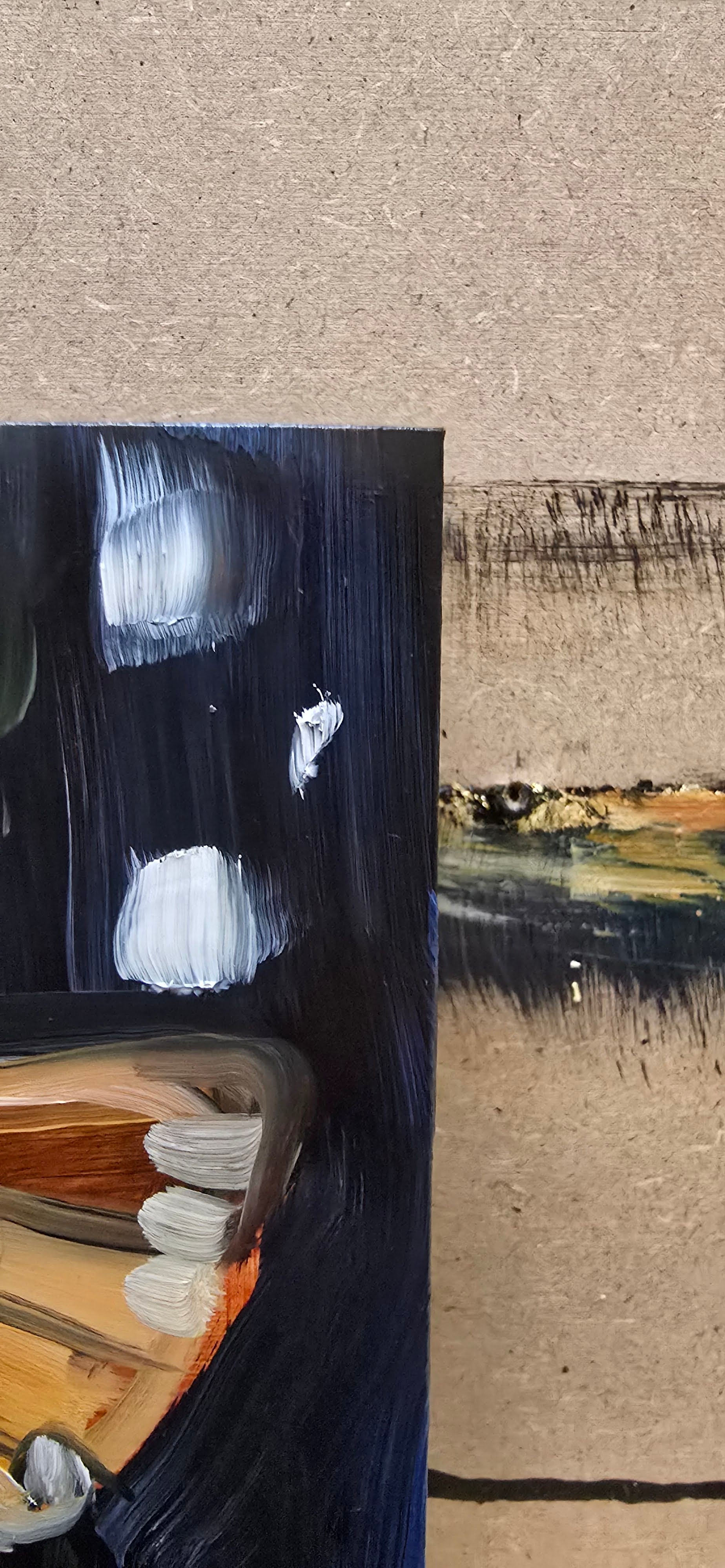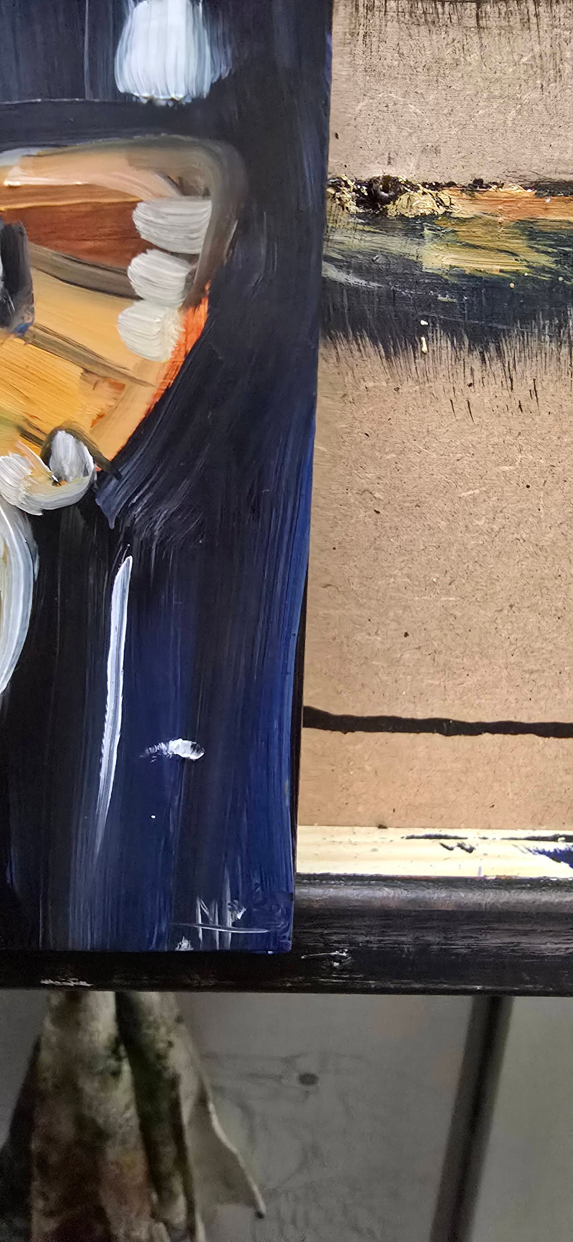 A delicate yet striking portrayal of a moth, painted in oil on a deep panel. The earthy golden tones against a dark background highlight the natural beauty and quiet mystery of this nocturnal creature. Compact in size, yet full of texture and presence — a piece that brings both elegance and a touch of nature’s wonder into any space.