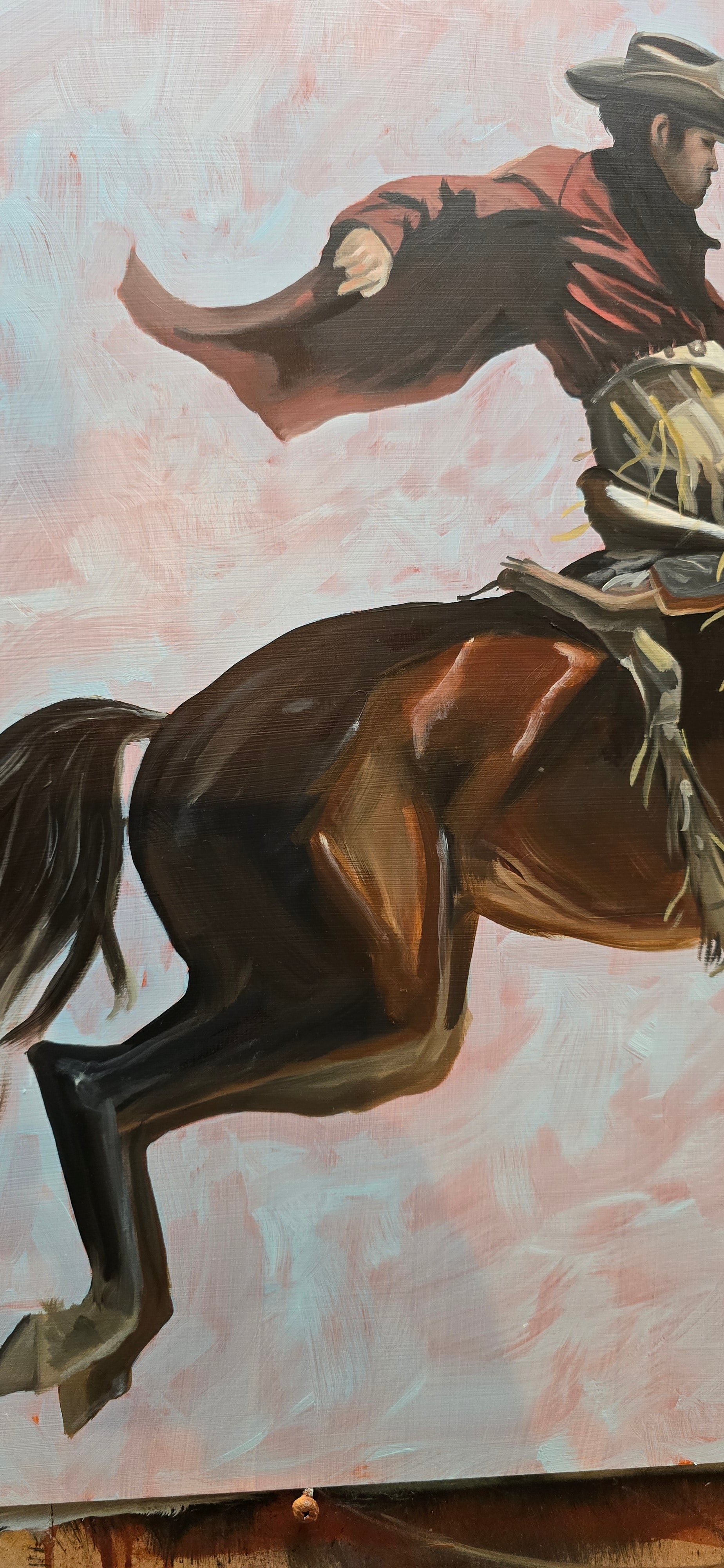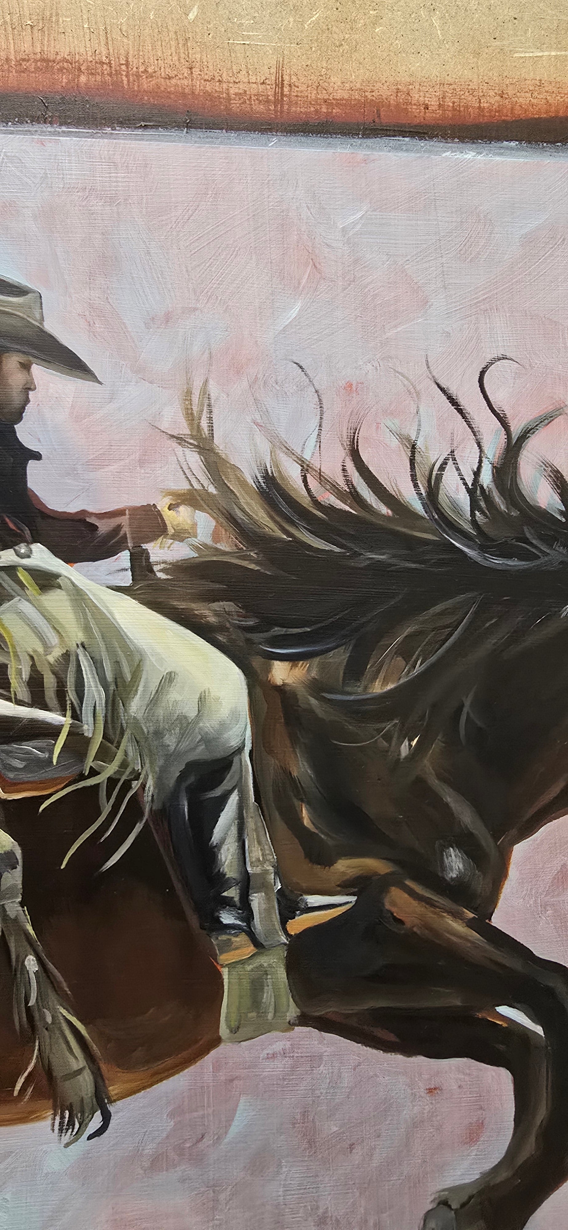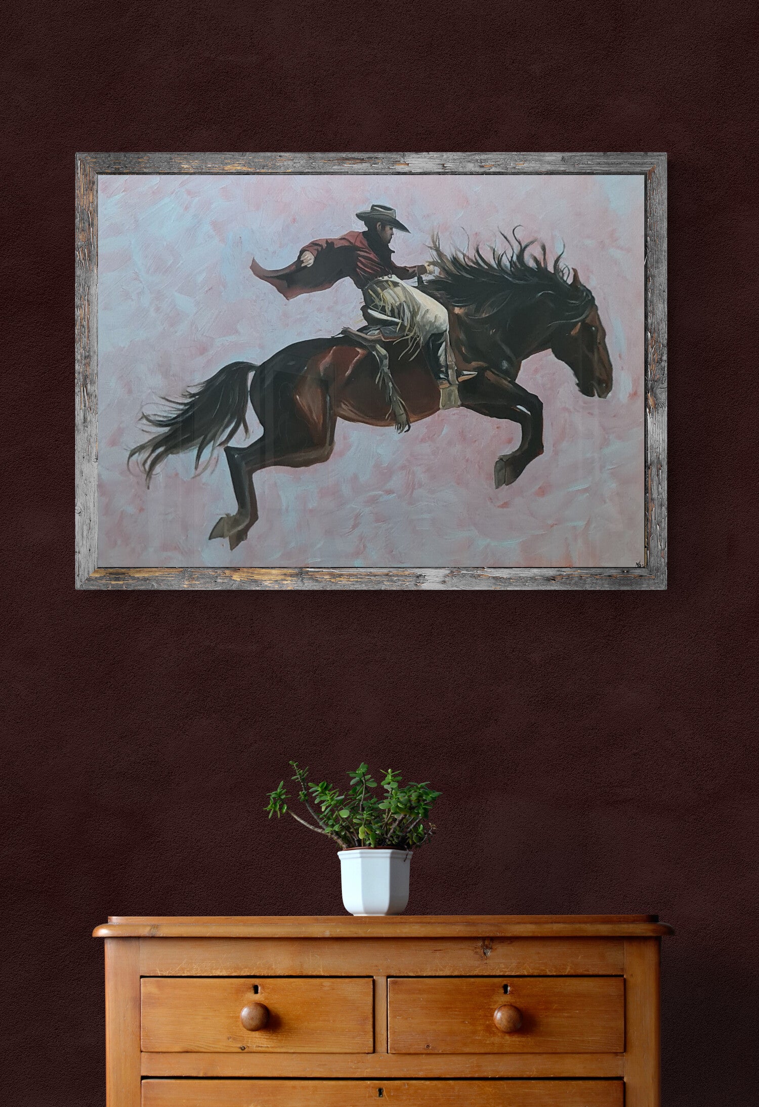 Bring movement, strength, and western character into your home with this original oil painting, created entirely by hand on premium dibond.
