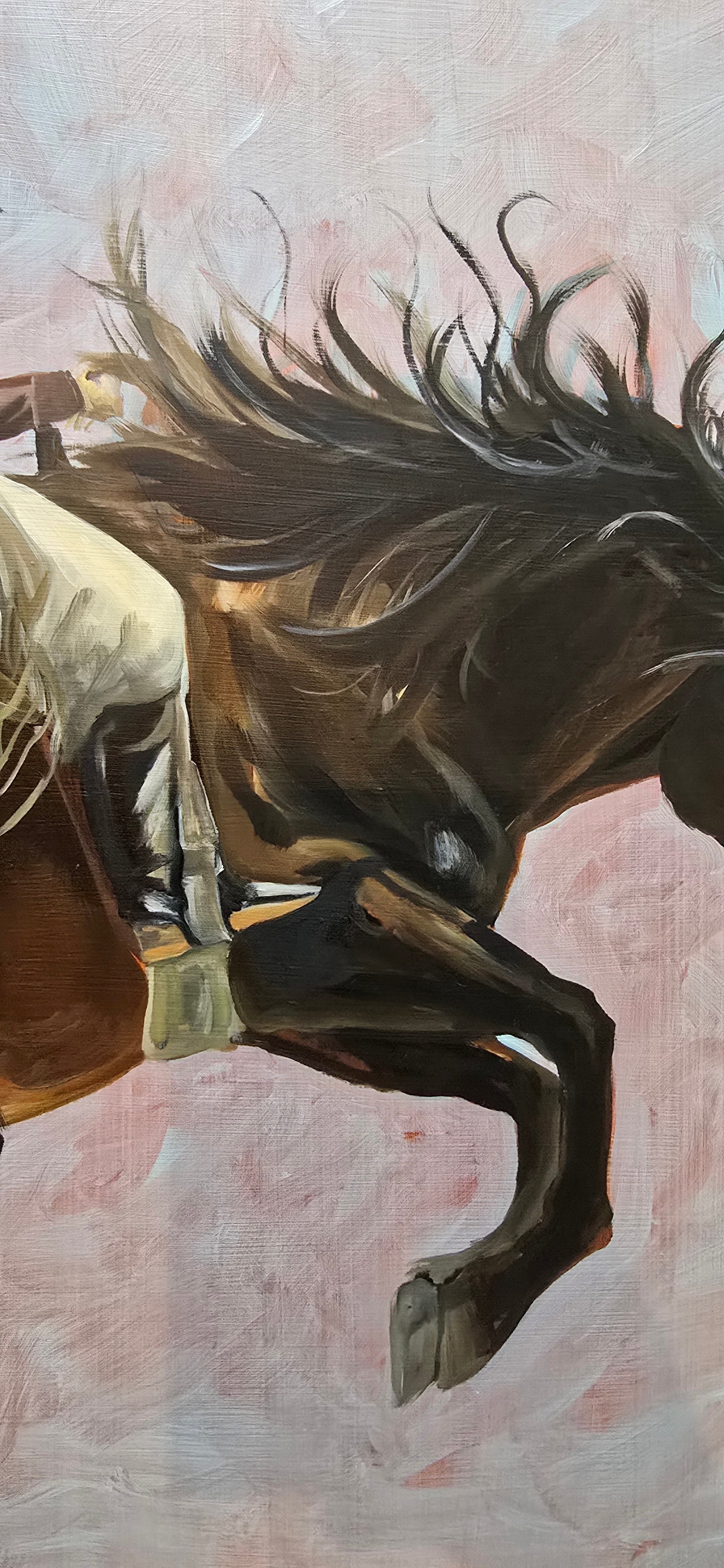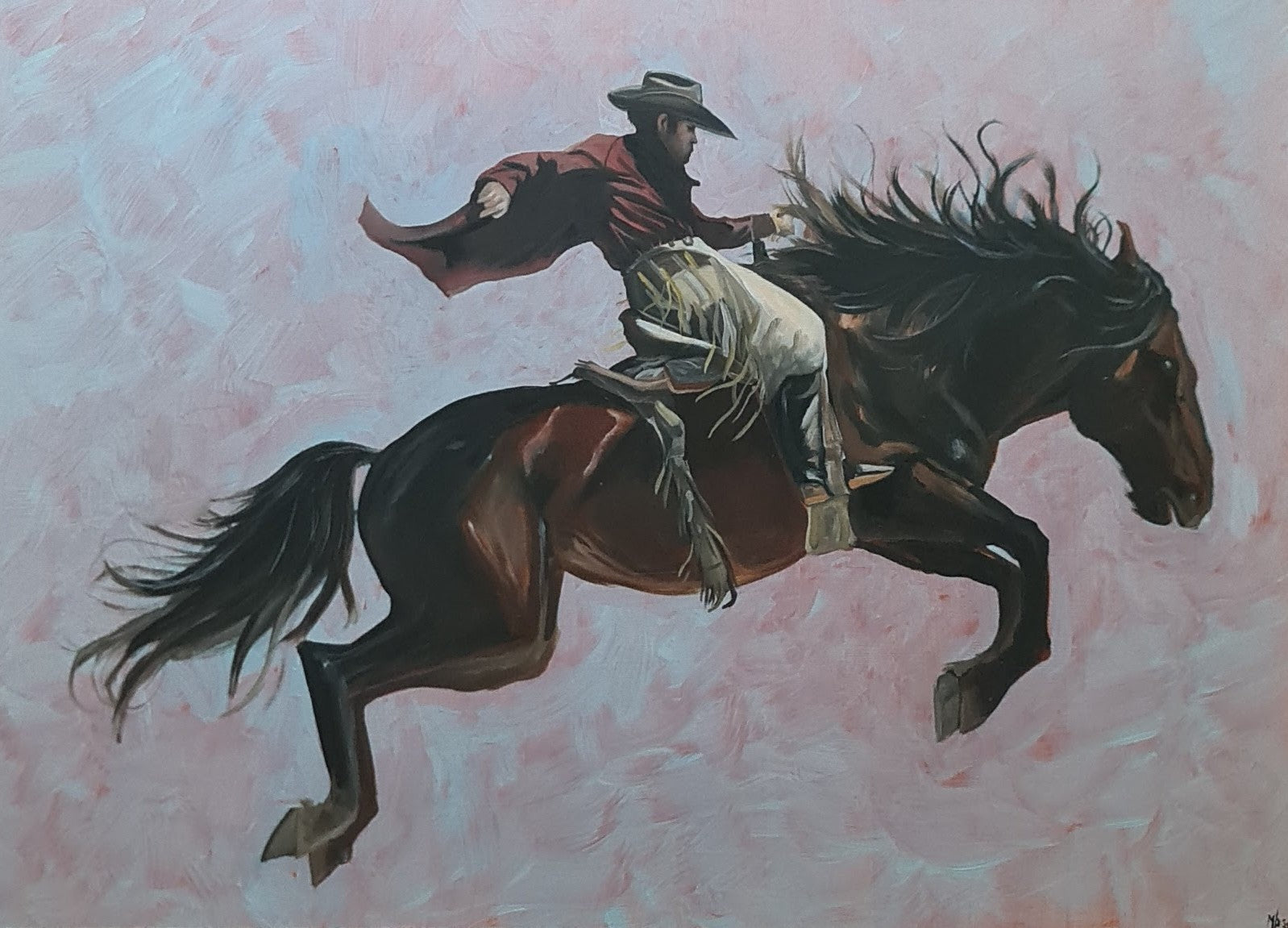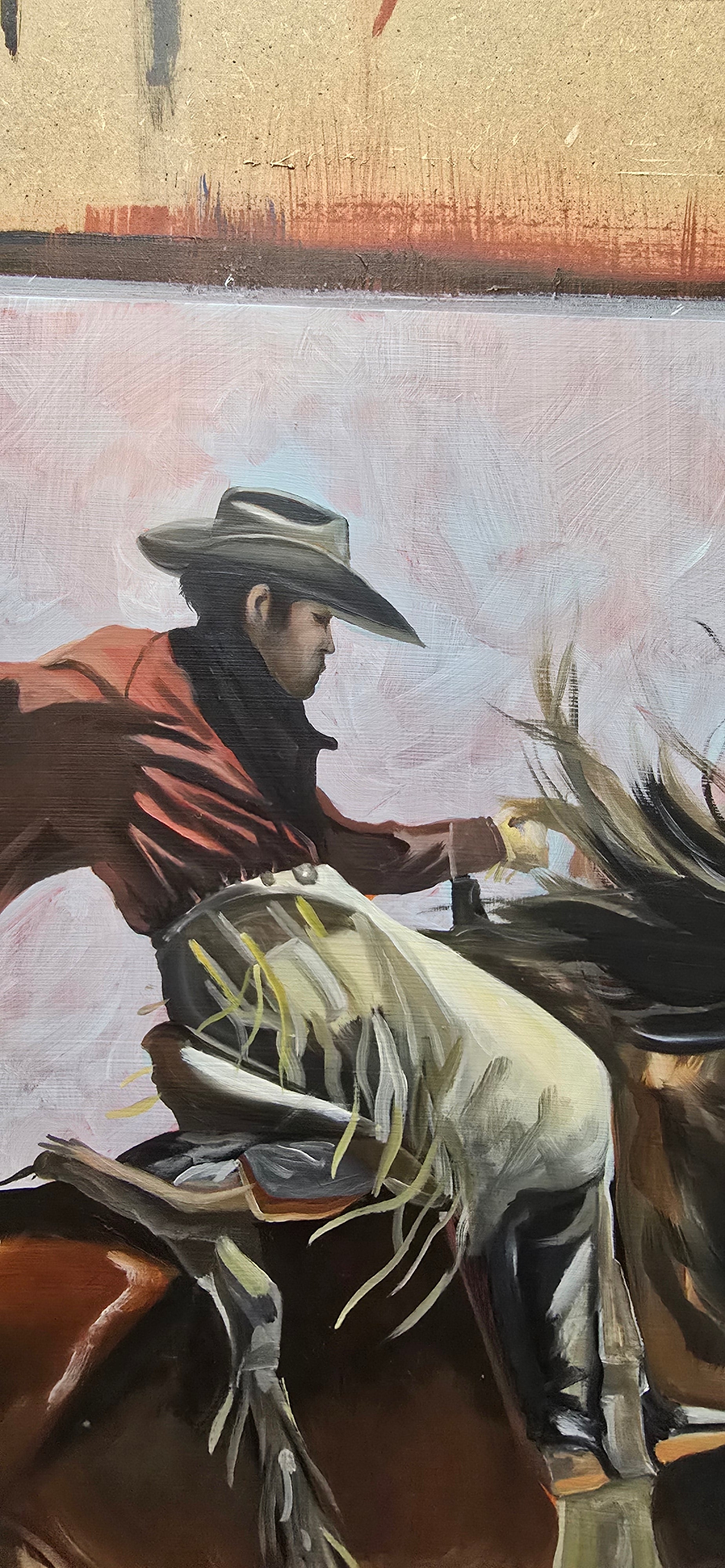 Bring movement, strength, and western character into your home with this original oil painting, created entirely by hand on premium dibond.