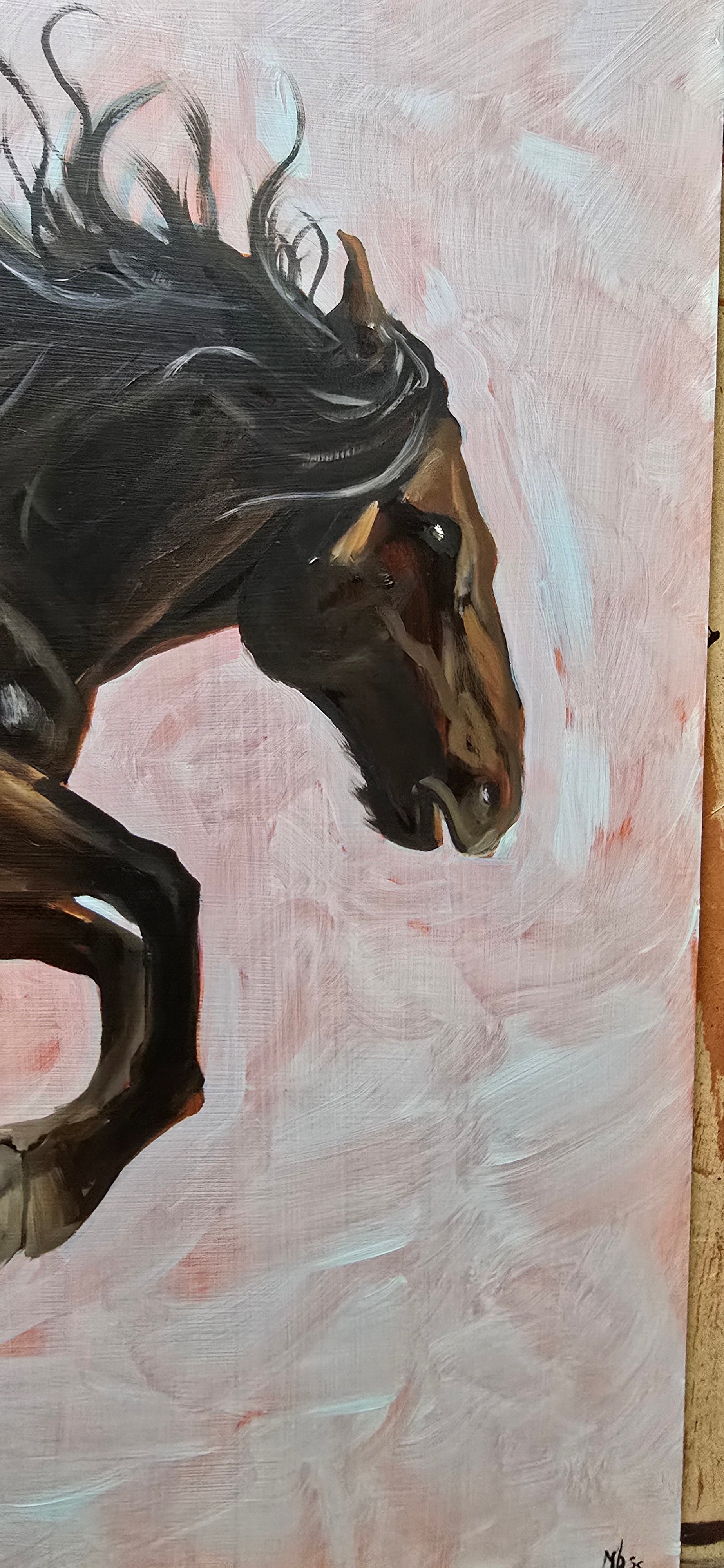 The warm tones, flowing motion, and textured background make this piece a true eye-catcher. Painted with professional-grade oil paints, the artwork has rich depth, subtle shine, and a lifelike presence that adds soul to any room.